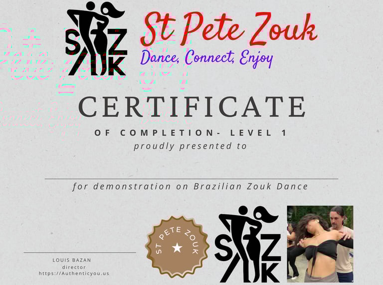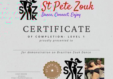 7. Track Your Journey: We believe in celebrating your achievements. Each member's level of completion will be tracked and published on our website. You will have access to monitor your improvements and milestones as you advance through the Brazilian Zouk dance pathways.